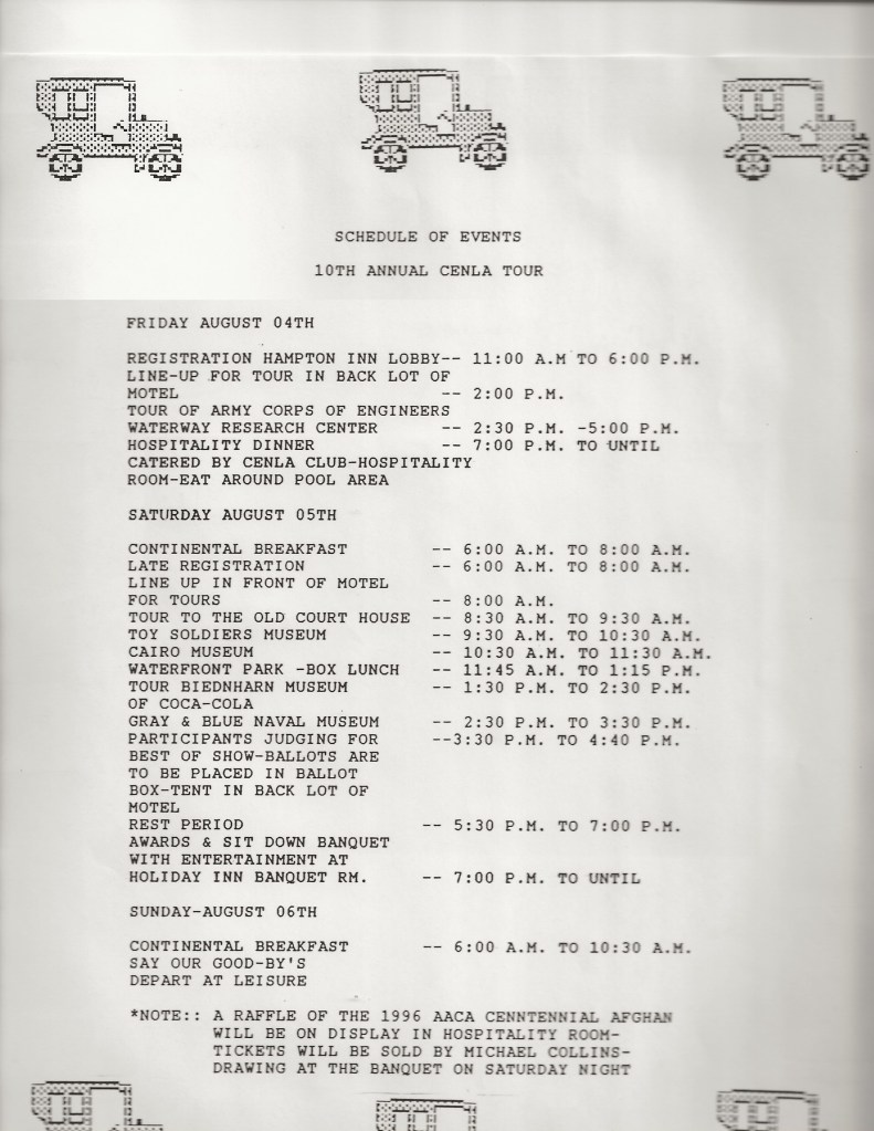 10th Annual Cenla Tour 1996 Schedule Vicksburg, MS